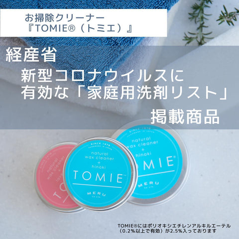 新型コロナウイルスに有効な「家庭用洗剤リスト」に弊社商品『TOMIE®︎』も掲載されております。引き続き新型コロナウイルス対策にお使い下さい。